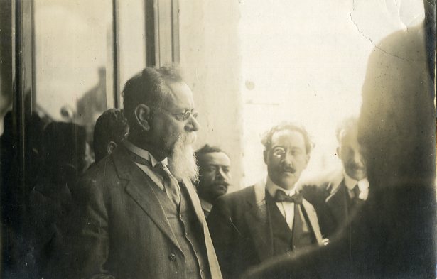 El Primer Jefe del Ejército Constitucionalista Venustiano Carranza en el balcón central de Palacio Nacional.