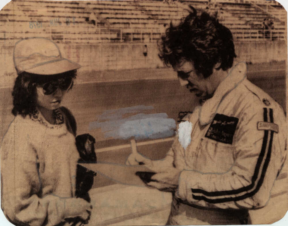 MARIO ANDRETTI, quien aparece dando un autógrafo a una aficionada en Gotemba, Japón, el pasado octubre, escenificó ayer en Suecia una estupenda carrera con Niki Luda, sin embargo, Andretti abandonó en la vuelta cuarenta y siete cunado su motor echaba humo.