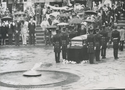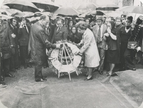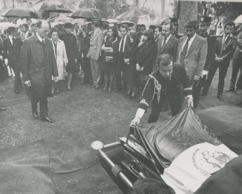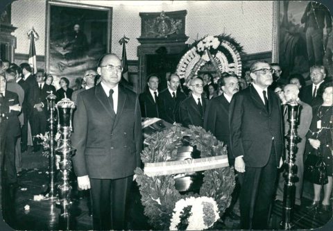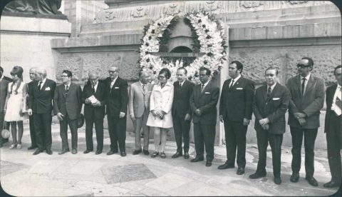 El presidente Luis Echeverría depositó una ofrenda floral ante la tumba de la escritora Rosario Castellanos