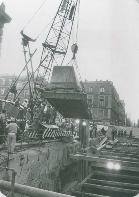 Traslado de parte del adoratorio Azteca al Museo Nacional de Antropología