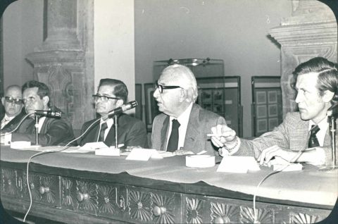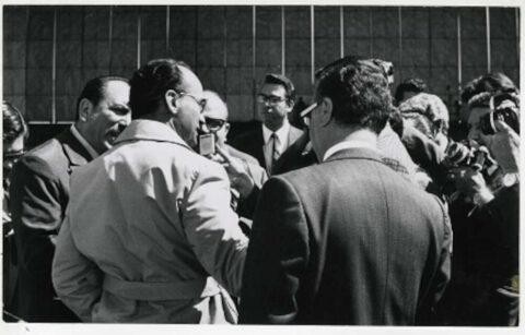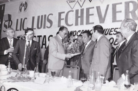 Luis Echeverría con reporteros