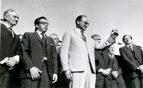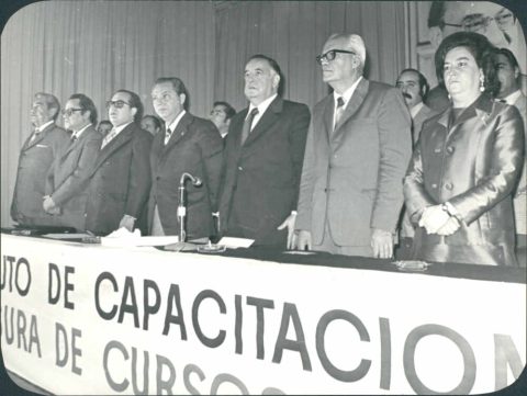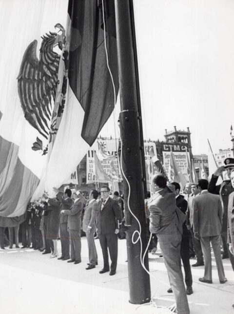 Echeverría izando la Bandera Nacional