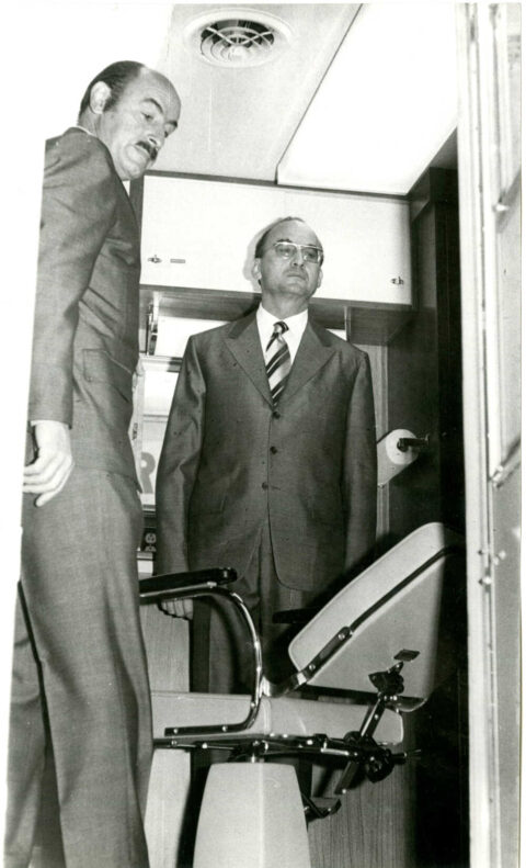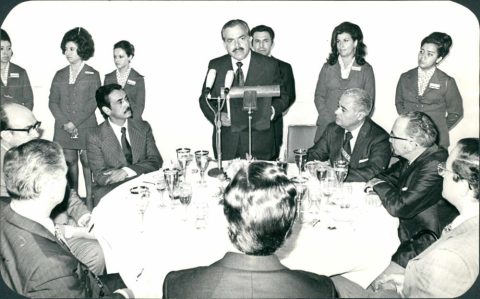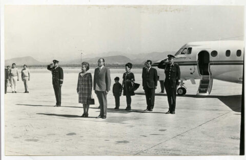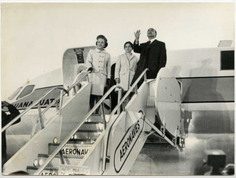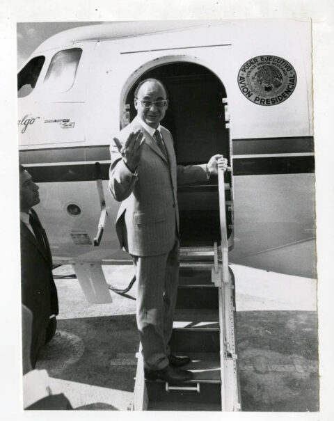Luis Echeverría aborda avión el avión presidencial para iniciar su gira de trabajo.