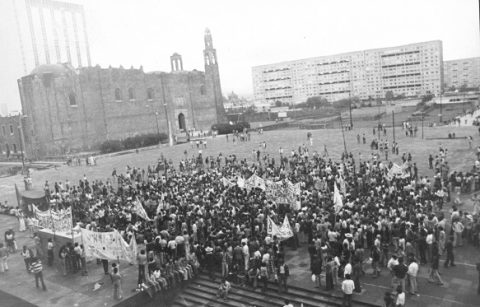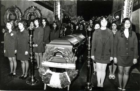 Jóvenes mujeres en el funeral de David Alfaro Siqueiros