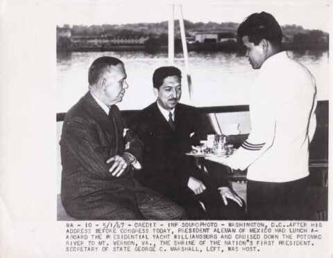 El presidente Alemán almorzó a bordo del yate presidencial Williamsburg y navegó por el río Potomac