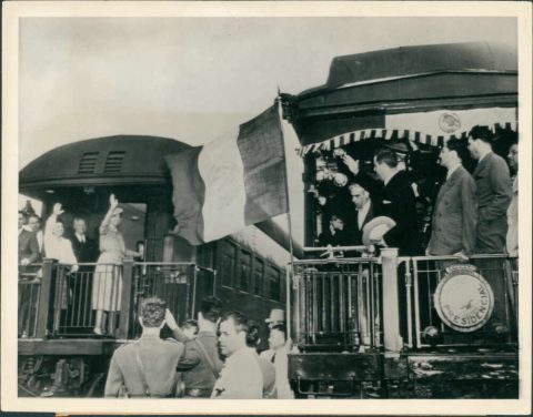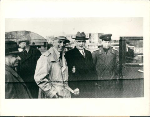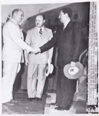El presidente de México, Miguel Alemán, es recibido a su llegada a Chattanooga esta noche por el alcalde Hug Wasson