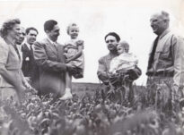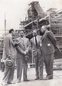 El presidente Alemán con su hijo, Miguel Jr., y miembros de comitiva