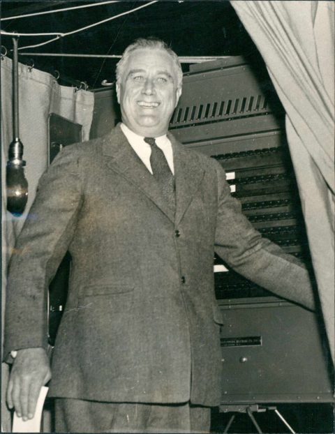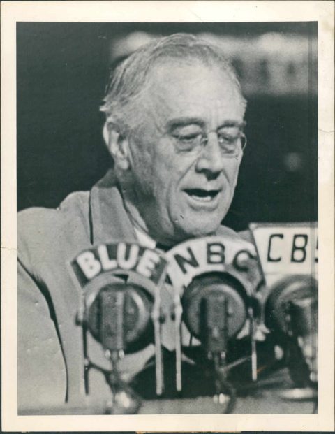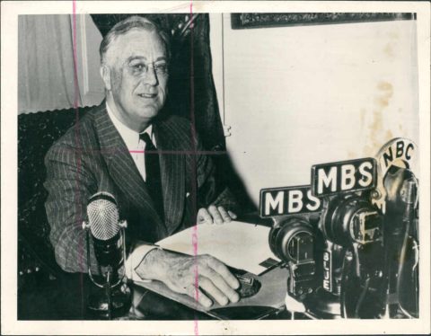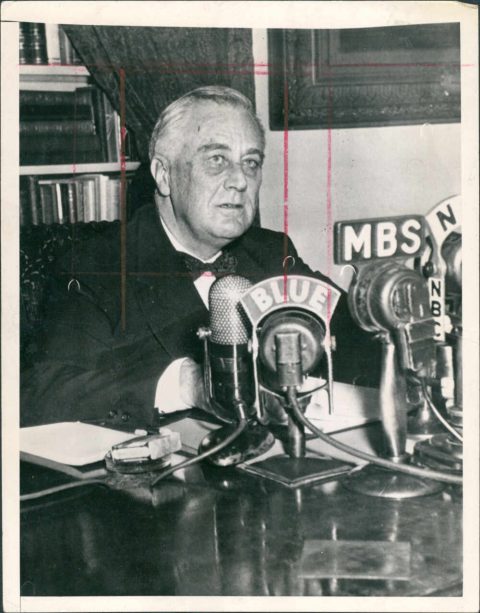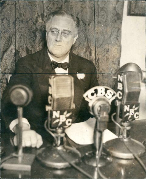 Franklin D. Roosevelt dando un mensaje a través de la radio