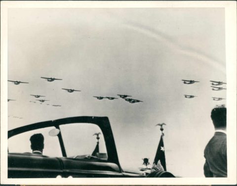 Presidentes viendo despliegue de la fuerza aérea