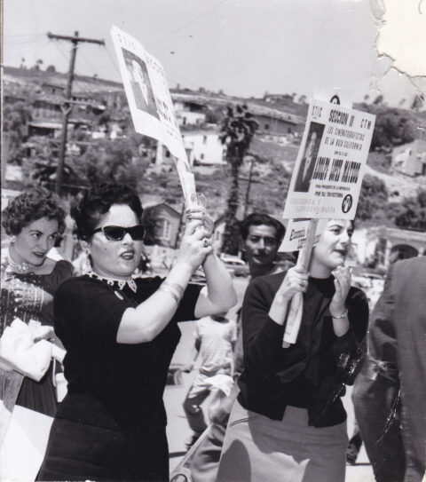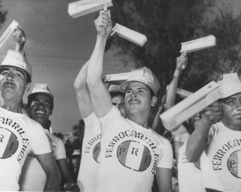 Ferrocarrileros en apoyo a López Mateos