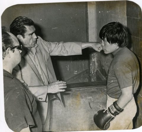 El Cuyo” Hernández enseñando a Rubén Olivares