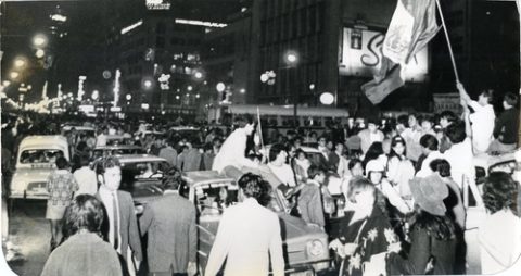 Aficionados festejando en la Avenida Juárez