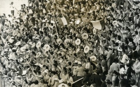 Aficionados celebrando el triunfo de México