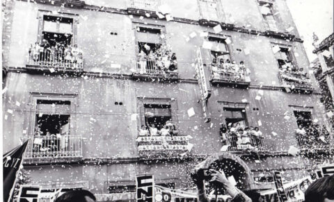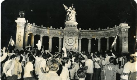 Aficionados festejando en el Hemiciclo a Juárez