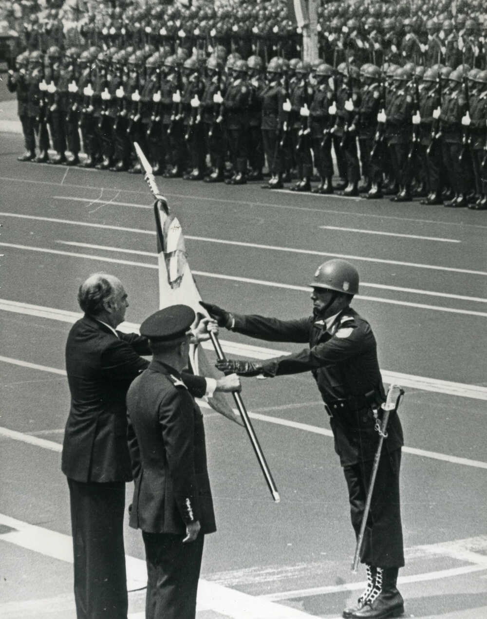 Ceremonia de reposición de bandera del batallón de Transmisiones.