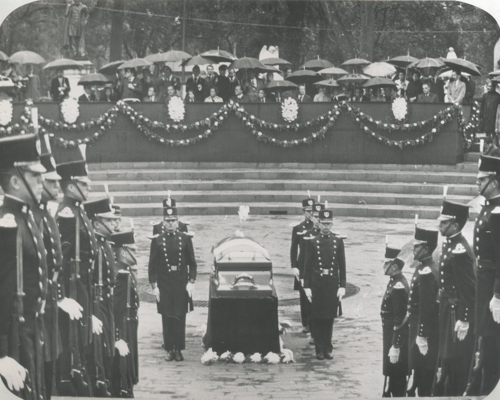 Ceremonia luctuosa de la escritora Rosario Castellanos que tuvo lugar en el Panteón Civil de Dolores.