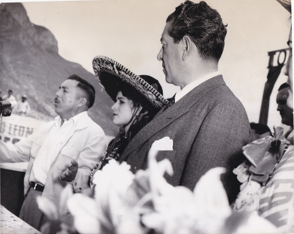 Campaña de Adolfo López Mateos, candidato del Partido Revolucionario Institucional (PRI) a la presidencia de la República, durante su gira por Galeana, Nuevo León.