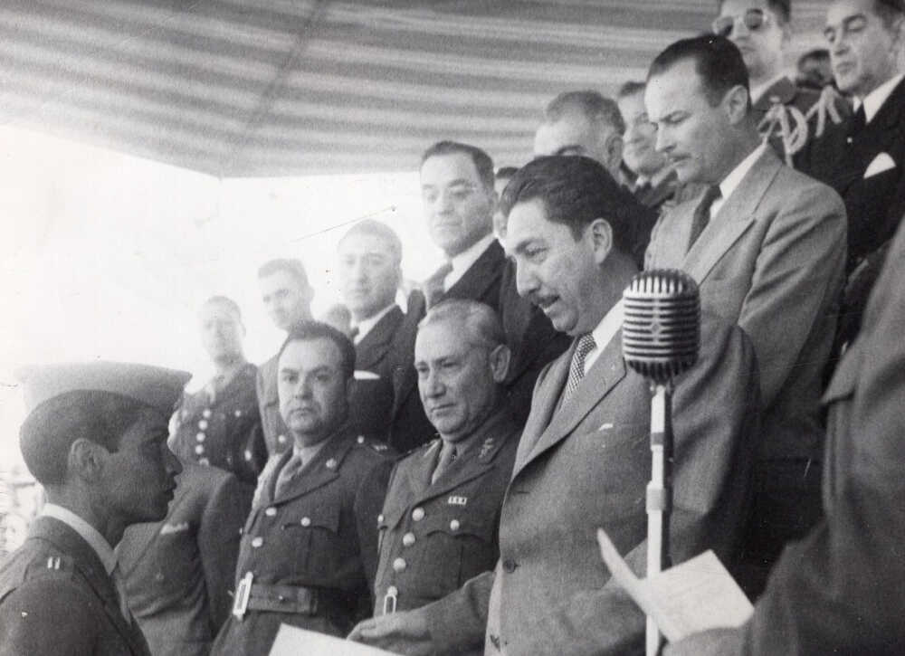 El presidente Miguel Alemán Valdés en la clausura de los cursos de equitación.