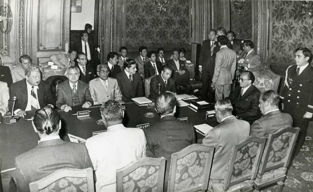 Junta de trabajo de la Comisión Nacional Coordinadora de Puertos con el presidente Luis Echeverría.