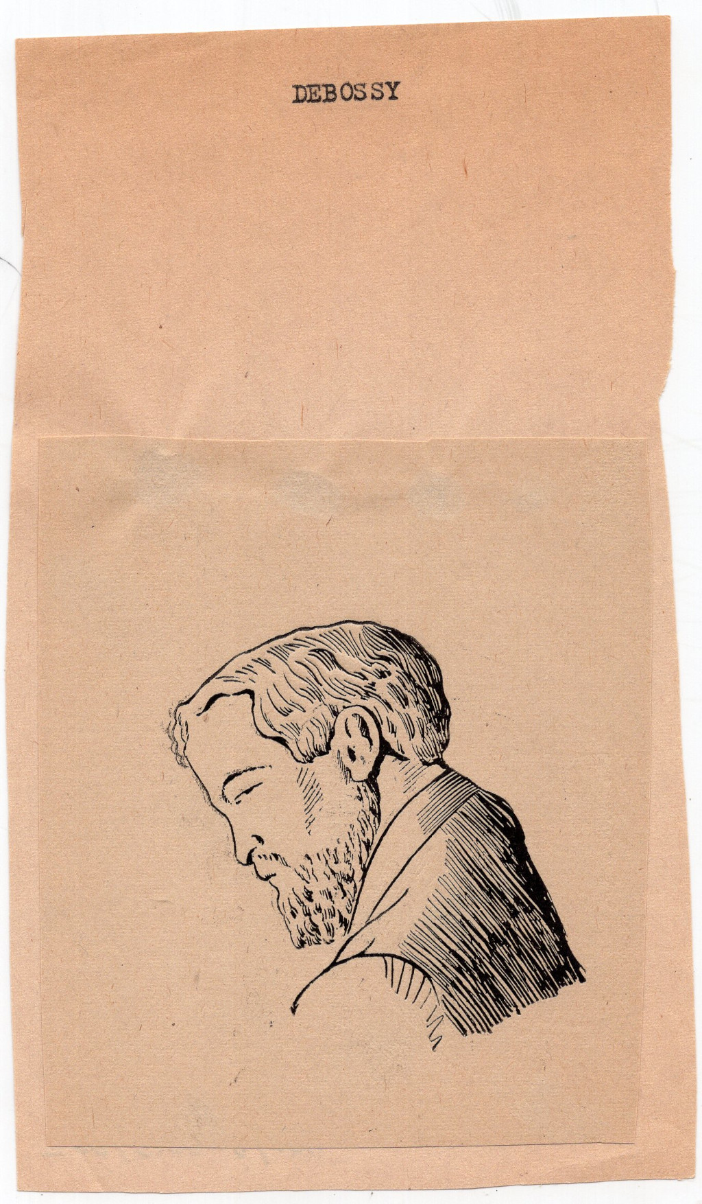 Retrato de Claude Debussy, compositor francés, cuyas innovaciones armónicas abrieron el camino de los radicales cambios musicales del siglo XX. Fue fundador de la denominada escuela impresionista de música. Entre sus obras más importantes destacan, "El Cuarteto en Sol Menor" (1893) y "El Preludio a la Siesta del Fauno" (1894).