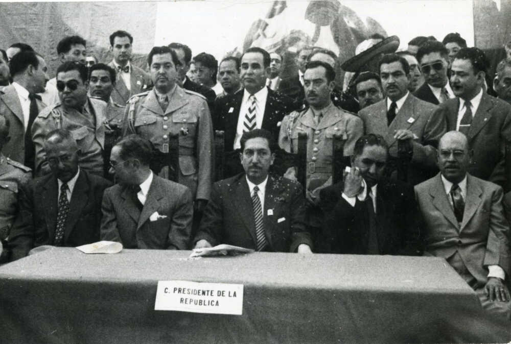 El presidente Miguel Alemán Valdés en el aniversario de la muerte de Emiliano Zapata en Cuautla, Morelos.