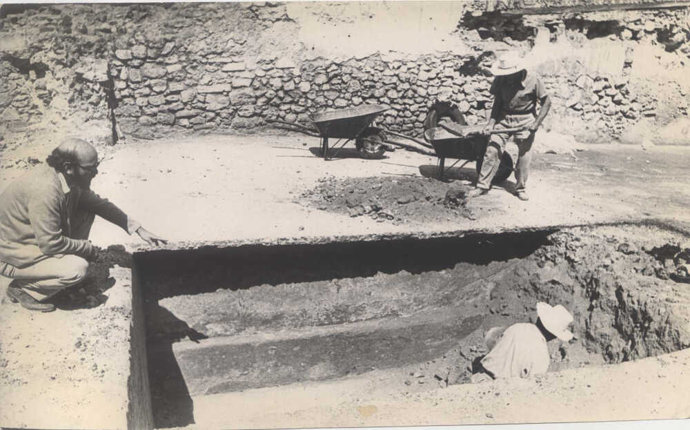 Matos Moctezuma dirigiendo una excavación cerca de Palacio Nacional.