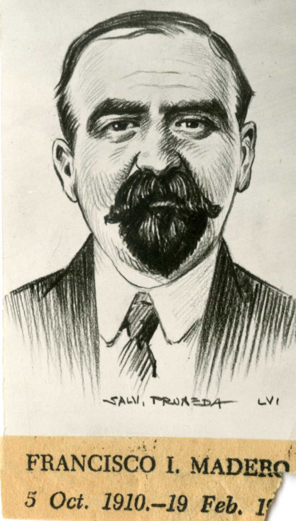 Retrato de Francisco I. Madero, empresario, político y escritor mexicano que se desempeñó como presidente de México del 6 de noviembre de 1911 al 19 de febrero de 1913. Fue uno de los más prominentes ideólogos y líderes de la Revolución mexicana, y logró derrocar con éxito al dictador Porfirio Díaz y unificar temporalmente varias fuerzas democráticas y antiporfiristas.