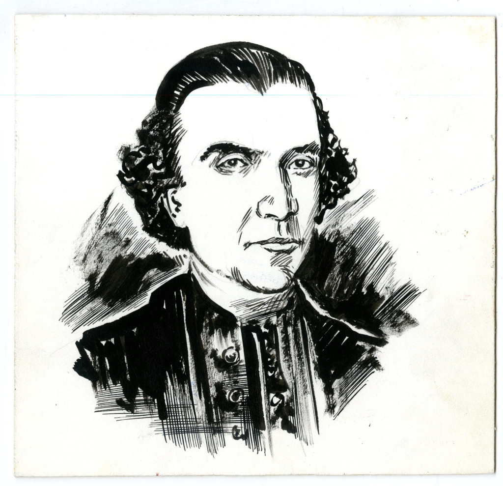 Retrato de Javier Francisco Clavijero. Sacerdote jesuita que vivió en el siglo XVIII. Historiador y religioso novohispano. Su máxima obra fue "Historia Antigua de México", basándose en varios textos para escribirla. Expulsado por ser jesuita de la Nueva España por el decreto de Carlos III.