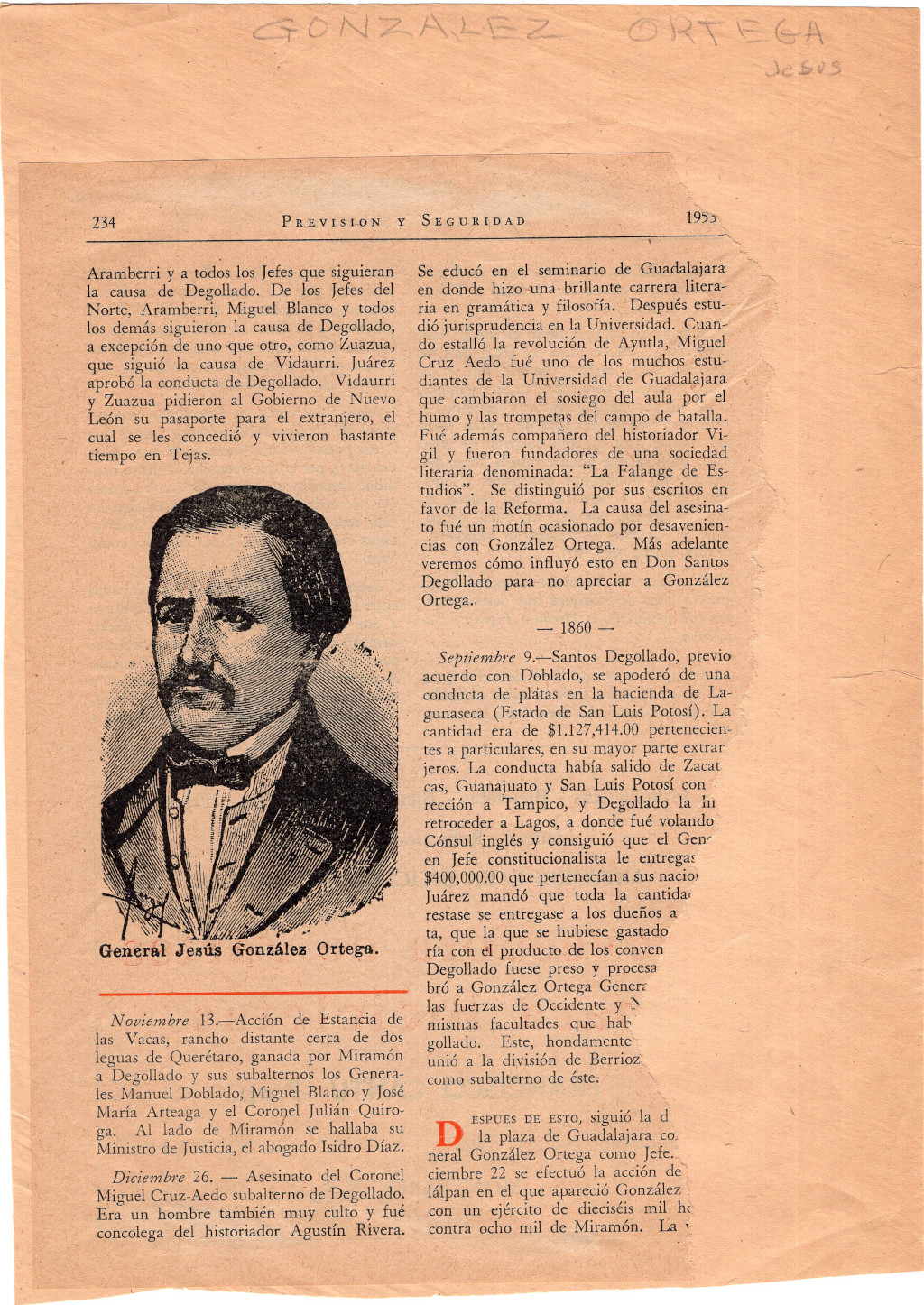 Retrato de González Ortega, militar y político mexicano. Gobernador de Zacatecas. Participó activamente a lado de Benito Juárez en al Guerra de Reforma y durante la segunda Intervención Francesa en México. Se destacó por defender la ciudad de Puebla del ejército francés.