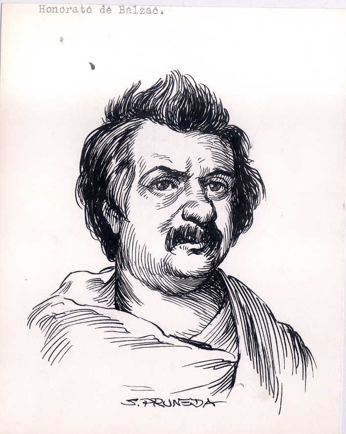 Retrato de Honoré de Balzac, novelista francés. El más importante de la primera mitad del siglo XIX, y principal representante, junto con Flaubert, de la llamada novela realista. Elaboró una obra monumental, "La Comedia Humana", ciclo coherente de varias decenas de novelas cuyo objetivo es describir de modo casi exhaustivo a la sociedad francesa de su tiempo.
