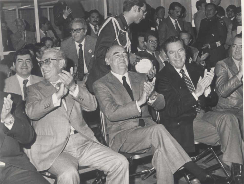 José López Portillo y funcionarios en la inauguración del Archivo General de la Nación.