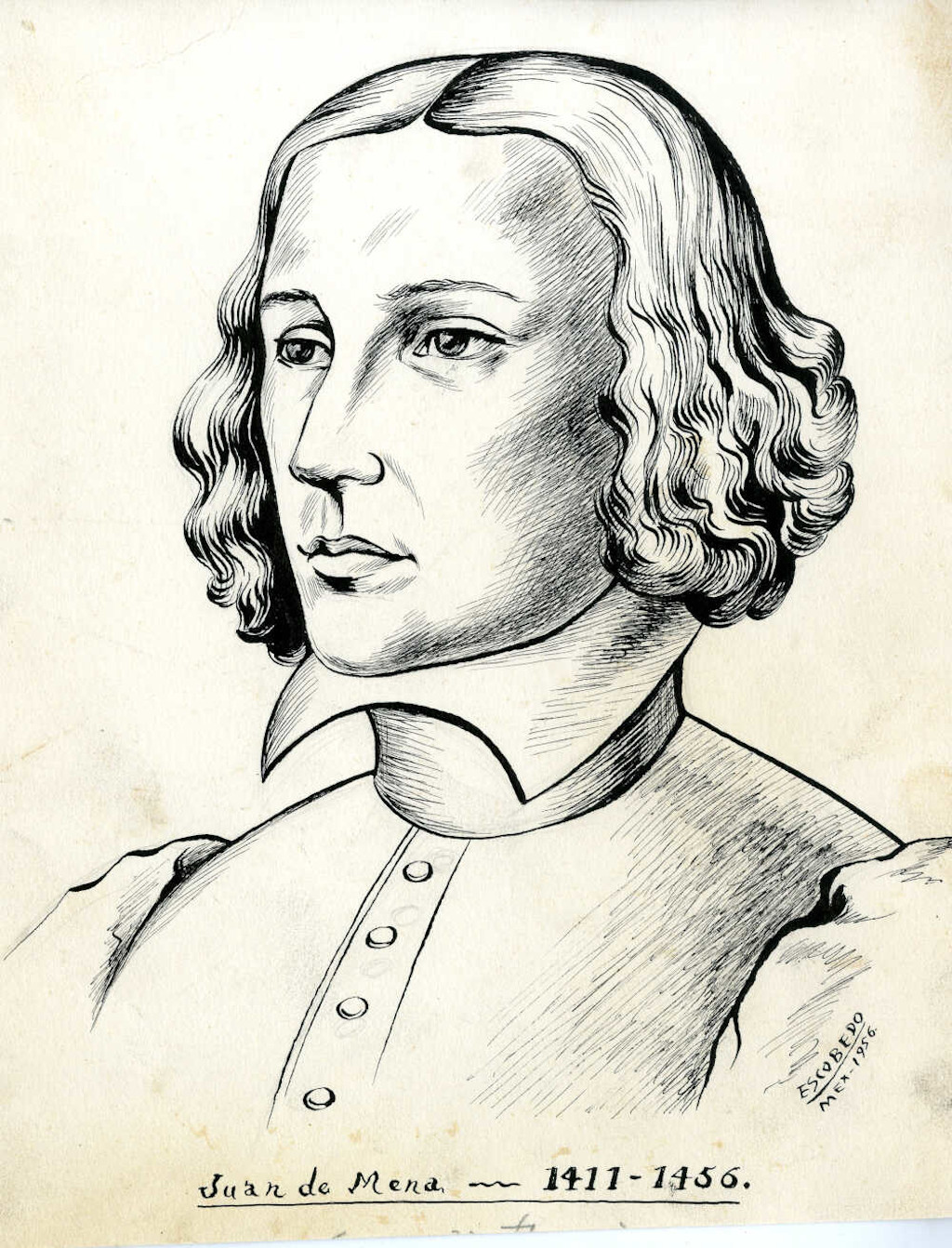 Retrato de Juan de Mena, poeta español perteneciente a la escuela alegórico-dantesca del prerrenacimiento castellano y conocido sobre todo por su obra Laberinto de Fortuna. Escribió en prosa el Comentario a la Coronación (1438), glosa de su propio poema en honor al marqués de Santillana. Esta obra en prosa se convirtió en una de sus obras más famosas y divulgadas en los siglos XV y XVI.
