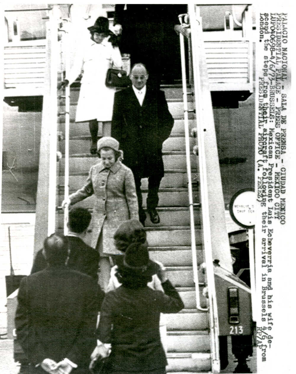 Luis Echeverría Álvarez y María Esther Zuno a su llegada al Aeropuerto de Bruselas.