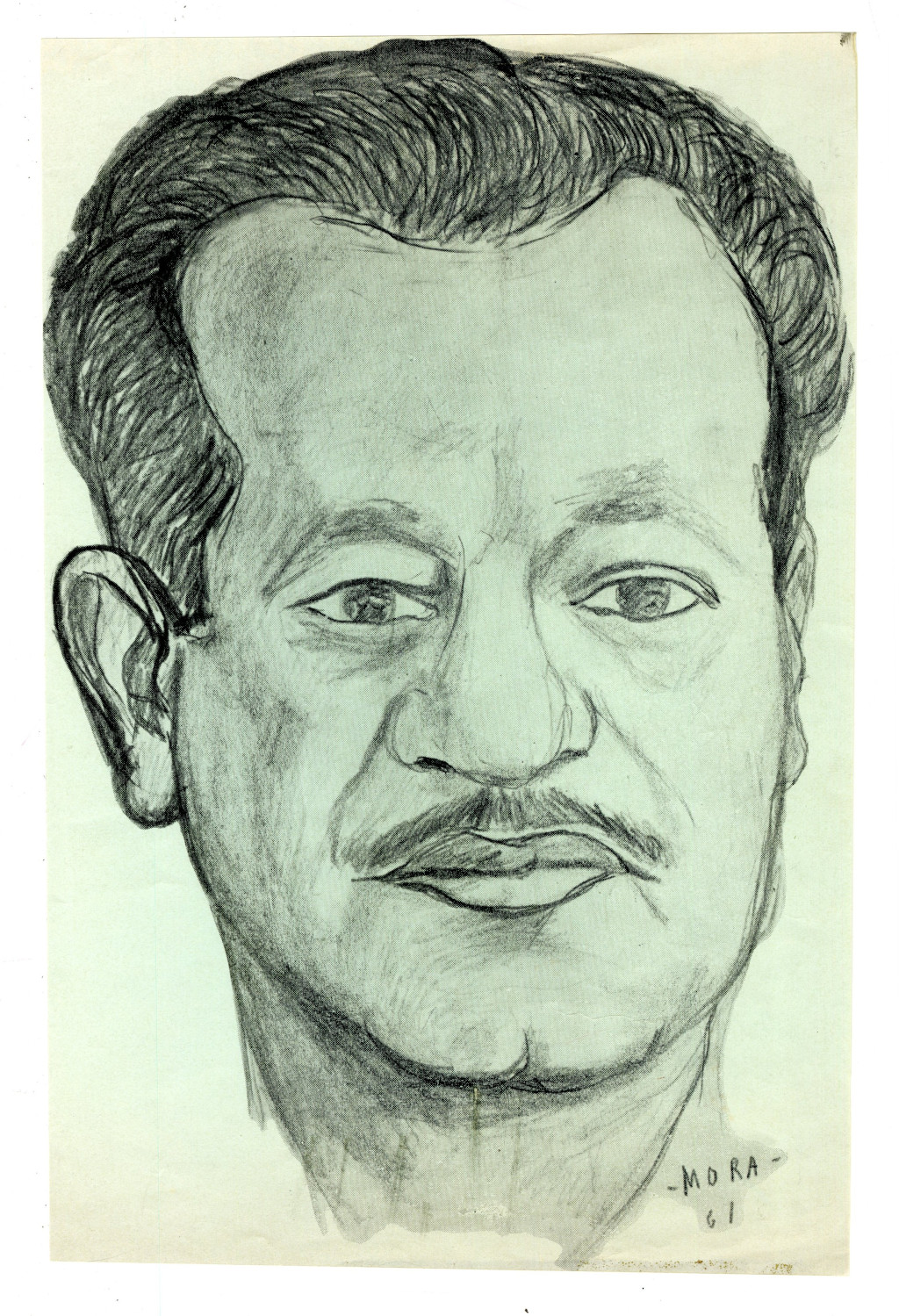 Retrato de Miguel Bustos Cerecedo, escritor y profesor veracruzano. Cultivó el cuento, la novela y la poesía social , sin dejar de lado el lirismo y los temas del amor. Op.: "Cause"; "La noche Arrodillada"; "Hambre"; "Tres Poemas Revolucionarios", etc.