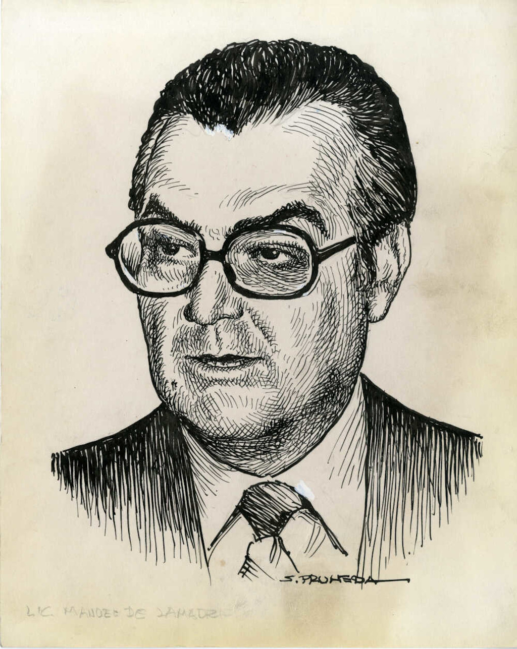 Retrato de Miguel de la Madrid, abogado y político mexicano que se desempeñó como presidente de México del 1 de diciembre de 1982 al 30 de noviembre de 1988.