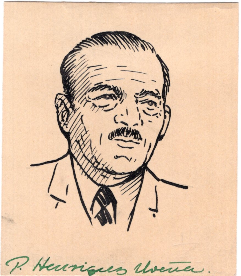 Retrato de Pedro Henríquez Ureña, lingüista y escritor dominicano. Entre sus ensayos destacan: "Ensayos Críticos", 1905; "Sobre el Problema del Andalucismo Dialectal en América",1932; "Las Corrientes Literarias en la América Hispánica",1949.