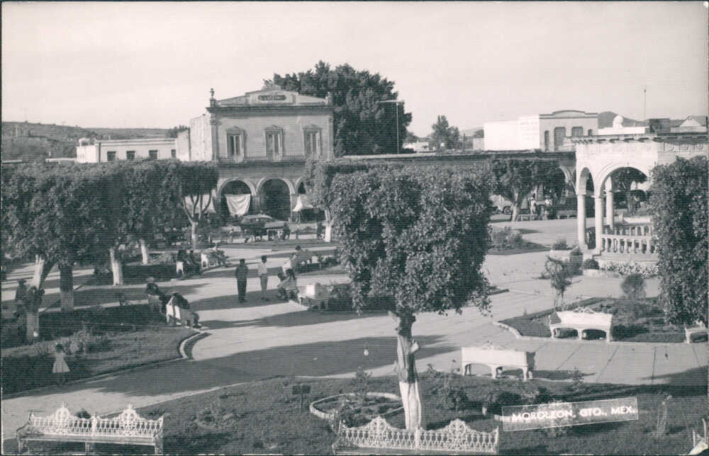 Vista del kiosco de la plaza principal de Moroleón, Gto.