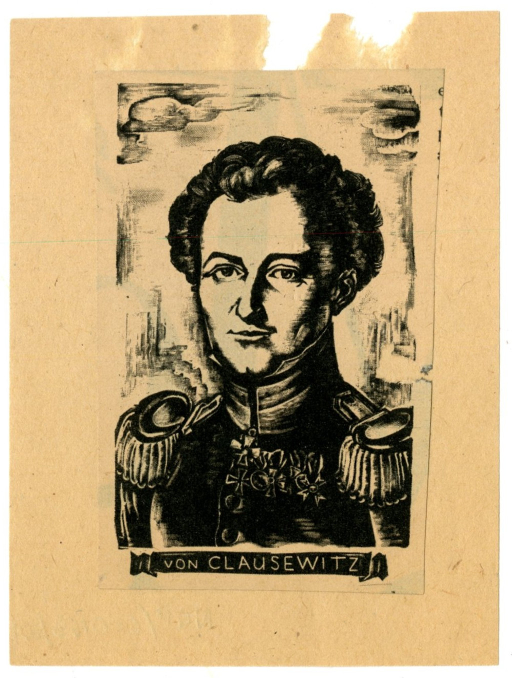 Retrato de Carl Von Clausewitz, militar prusiano. Uno de los más influyentes historiadores y teóricos de la ciencia militar moderna. Es conocido principalmente por su "Tratado de la Guerra", en que aborda durante ocho volúmenes un análisis sobre los conflictos armados, desde su planteamiento y motivaciones hasta su ejecución, abarcando comentarios sobre táctica, estrategia e incluso filosofía.